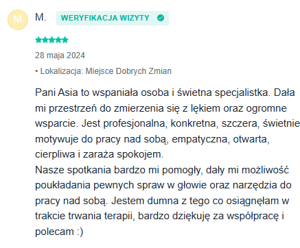 To błędne koło, z którego trudno się wyrwać, ale uwierz mi: to jest możliwe. Jesteś tutaj, co oznacza, że zaczynasz walczyć o siebie. Chcę, żebyś wiedziała, że rozumiem Cię lepiej, niż myślisz, i wierzę, że dasz radę.